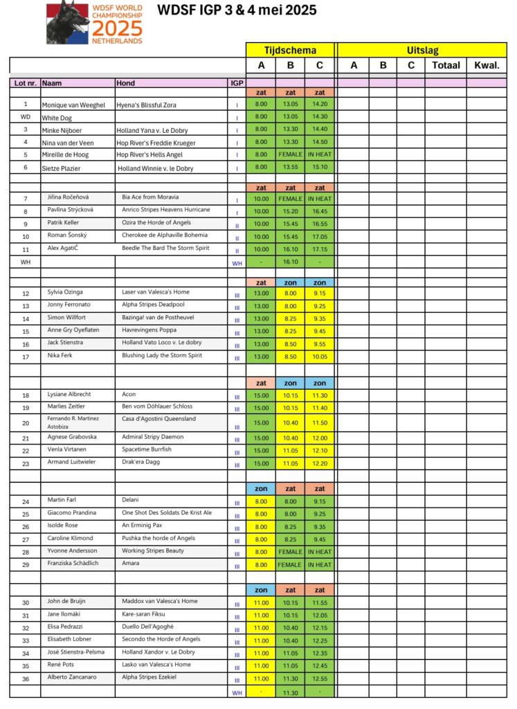 - Competition schedule Mondioring